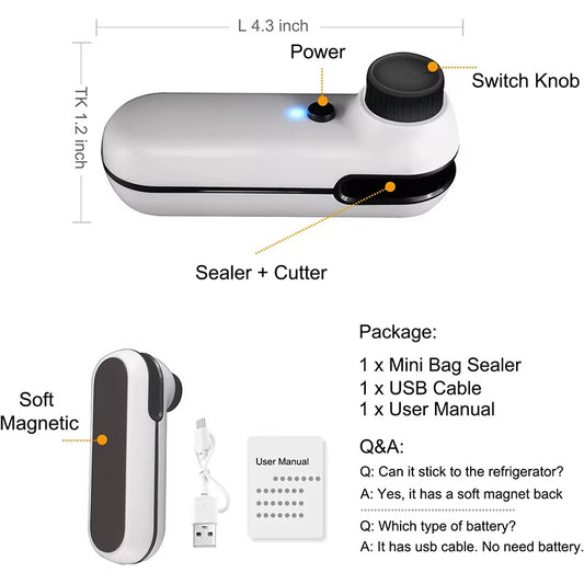 Usb Bag Sealer Portable Rechargeable Mini Bag Sealer For Plastic Bags Snack Bags Handheld Food Sealer Machine With Cutting Kitchen Gadgets